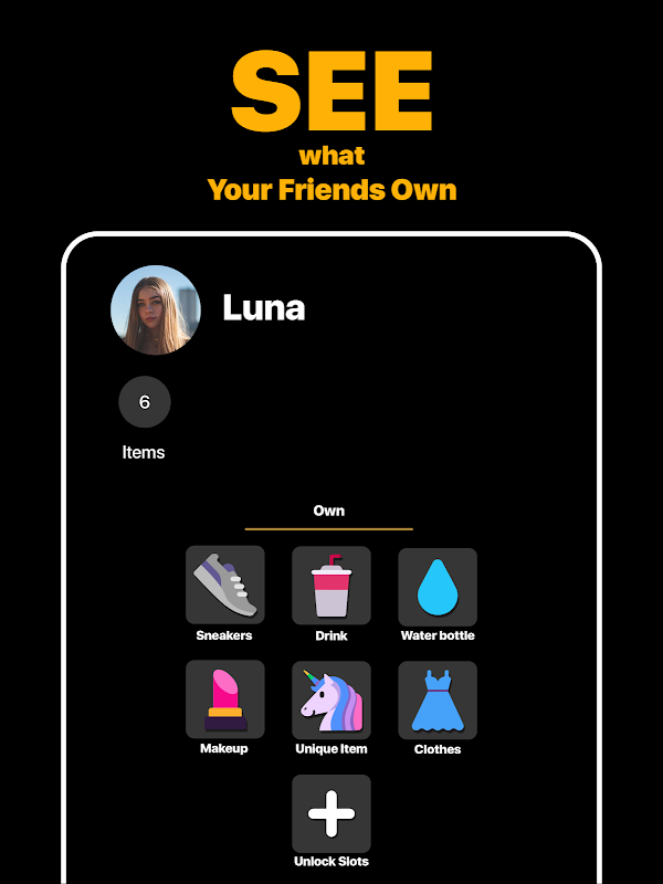 Add images of your favorite items like: Coffee mug, Water bottle, Makeup, Clothes, Unique item and Sneakers.