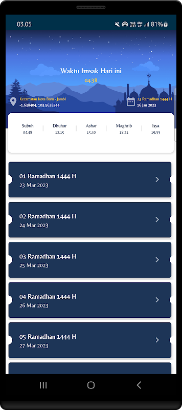 このラマダン スケジュール アプリケーションには、最新バージョンでは Imsak スケジュールと断食スケジュールも装備されています