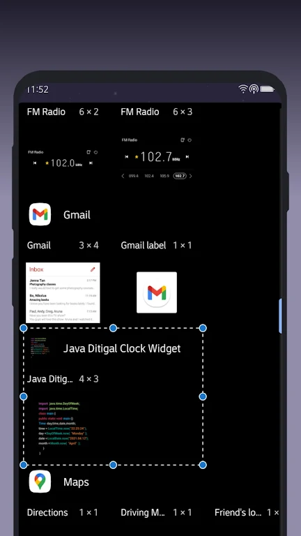 > Available widget all sizes