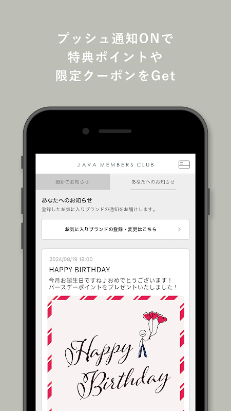 プッシュ通知でお得な情報や最新ニュースをお届けします。
