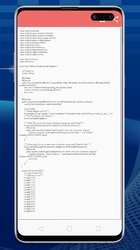 --> Long press the java code.