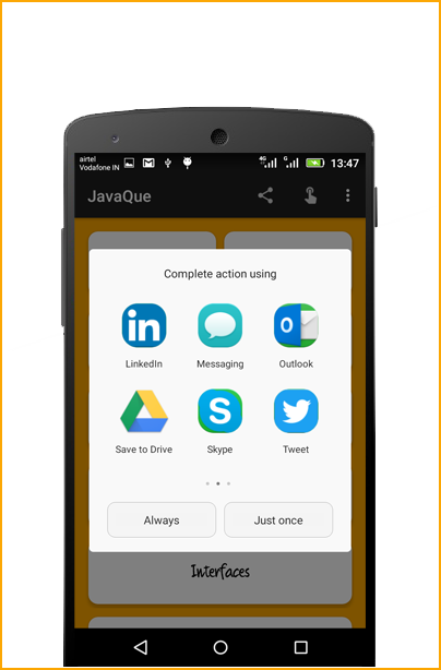 -お気に入りのJavaQueアプリを友達と共有します。