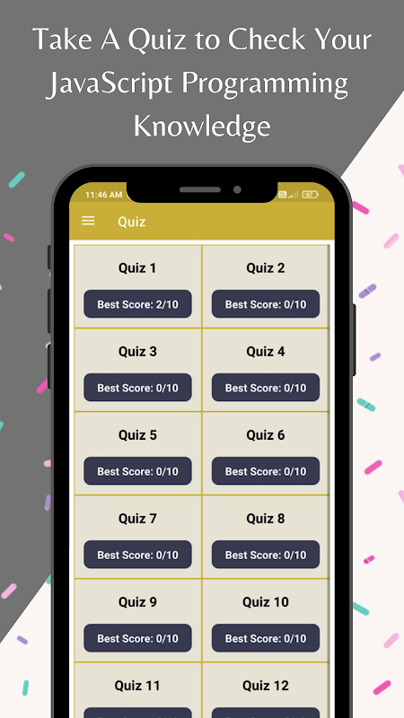 統合された MCQ と Q&A セクションで知識をテストし、学習を強化し、進捗状況を追跡します。最適な学習のために設計されたユーザーフレンドリーなインターフェイスをお楽しみください。JavaScript をこれまでより簡単に習得できます。