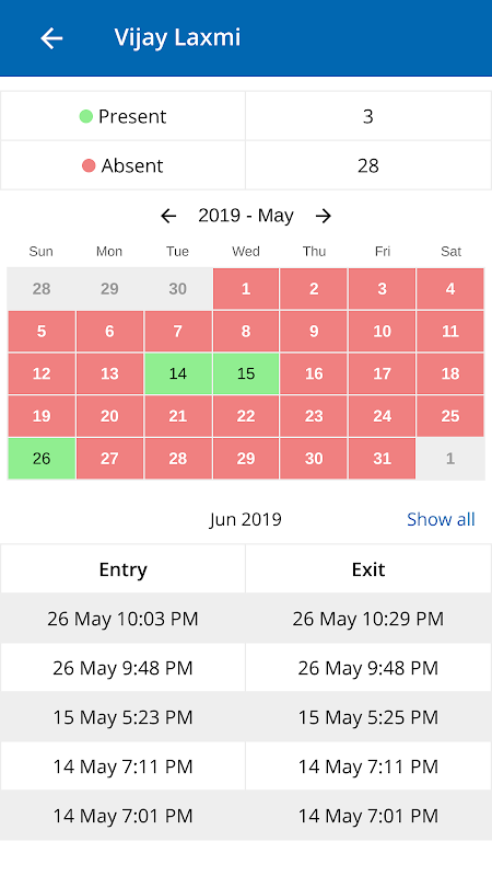 メイドの出席、出入りの追跡。