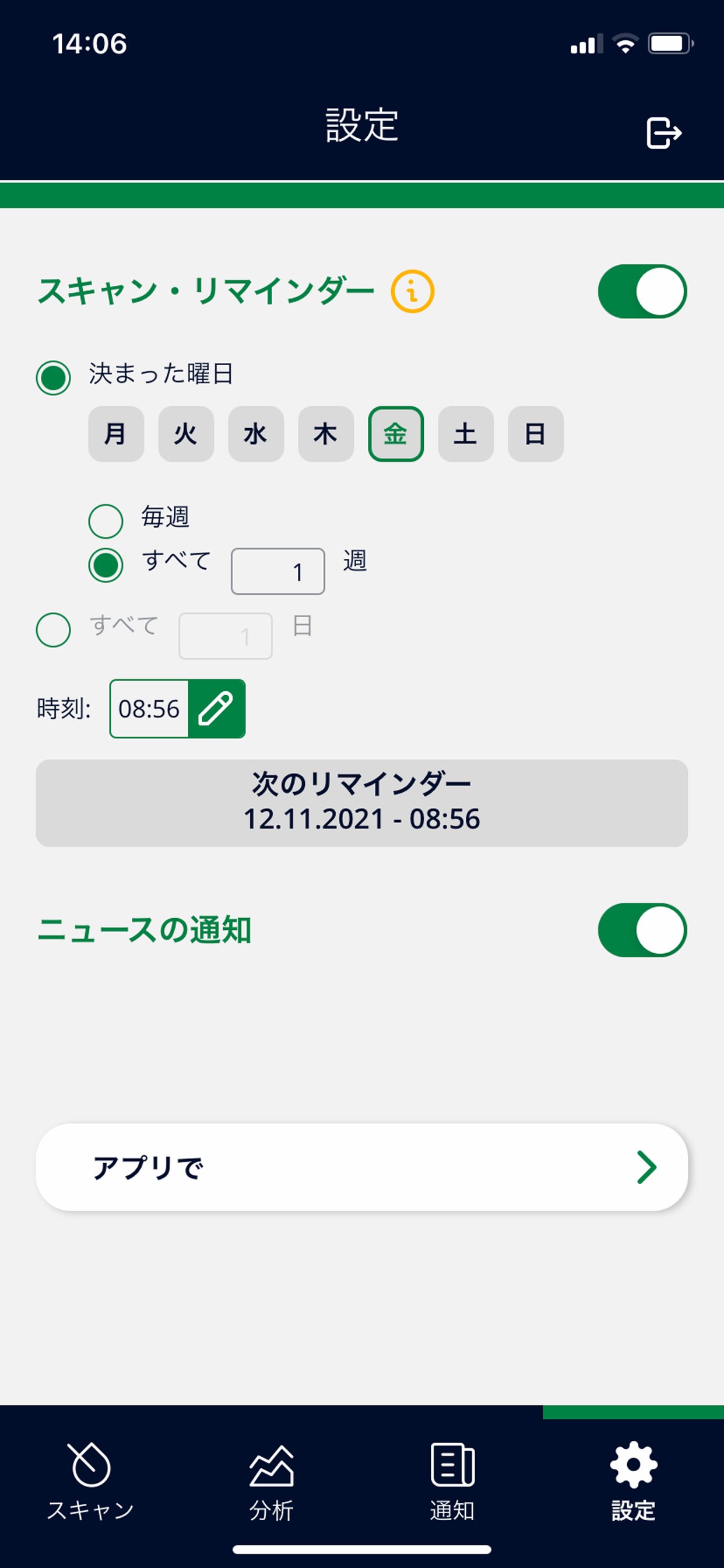 - スキャン・リマインダーを個別に調整(日、週、時間)