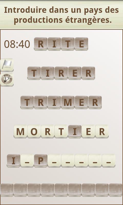 ゲームの目的は、クロスワードパズルの定義の仕方で与えられた定義に対応する単語(矢の単語)を形成することです。これを行うには、白い背景の部分を動かすことができます(暗い背景の部分は動かせません)。