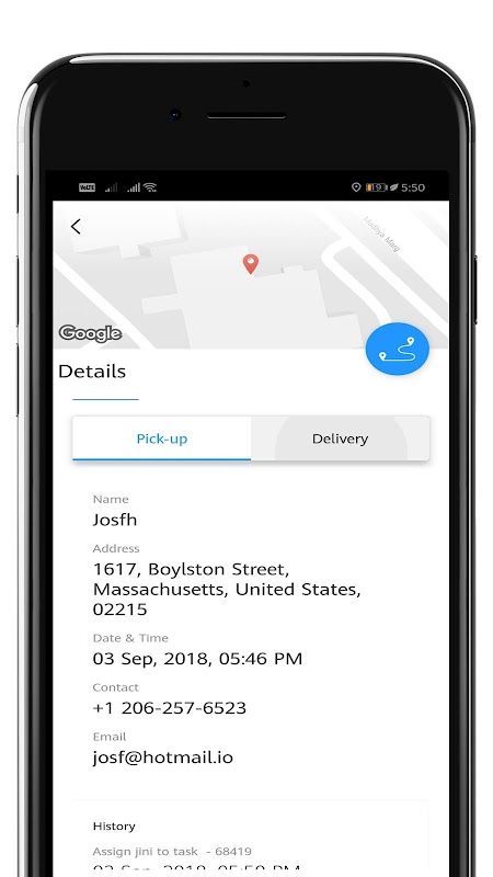 2. Place Pick up Or Delivery Orders onto your platform, by filling in the task description, contact details and location by placing a Pin on the Map
