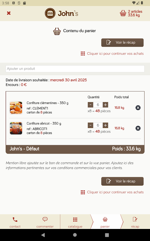 John の専用アプリケーションを使用すると、プロの顧客が簡単に注文を受けられるようになります。 100%パーソナライズされたデジタルカタログを顧客ごとに特別価格で提供します。オファーやプロモーションを広めます。