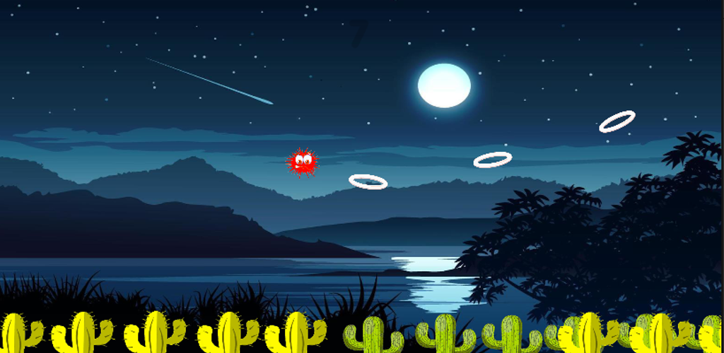Fly with yellow object and avoid falling over the cactus by jumping and flying.
