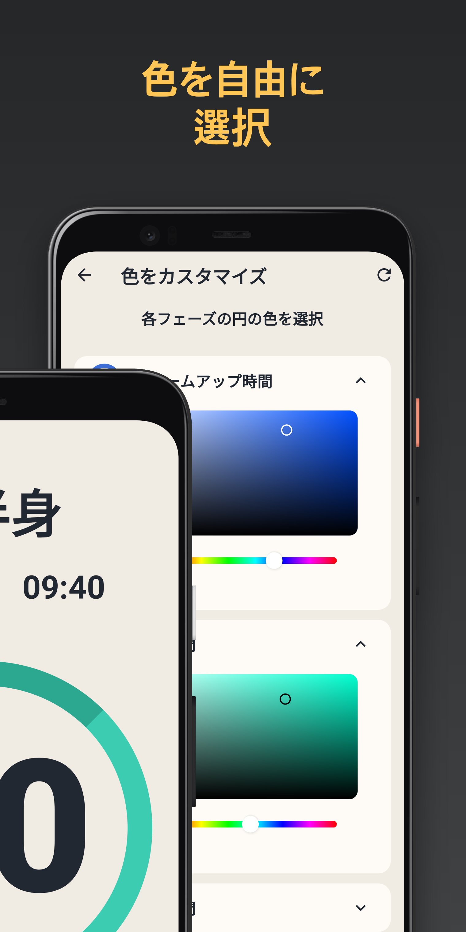 ステージごとの色の適用: 各ステージに独自の色を適用して、ワークアウトを視覚的により便利に管理できます。