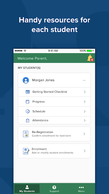 保護者はアプリから直接次の学期の生徒を簡単に再登録できます。