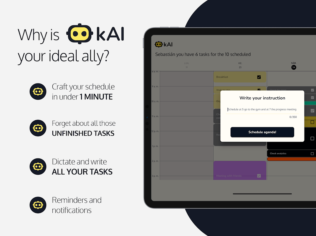 インテリジェントなパーソナル アシスタントおよび AI を活用したタスク マネージャーである kAI を使用して、タスクの処理方法を変革します。 kAI は、楽に計画された生活のビジョンを現実にします。