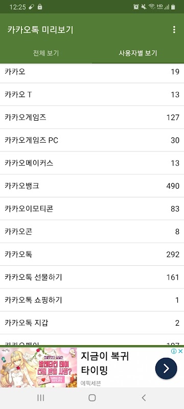 通知(ノフィケーション)のアクセスを通じたカカオトークのプレビューアプリです。