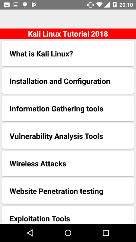 This application allows users to learn Kali Linux and all the topics related to it in a step by step hierarchy manner.