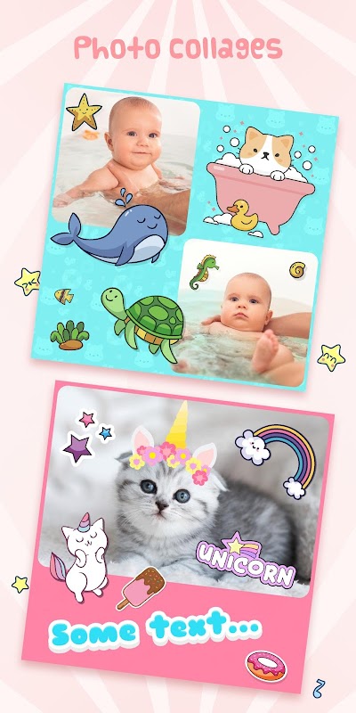 あなたの素敵な写真のための最もかわいいエディター。ステッカーやフレームがいっぱい!🦄 🌈