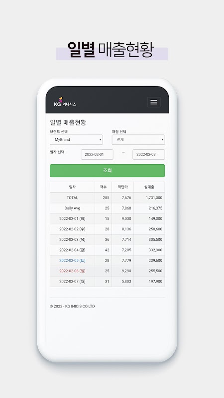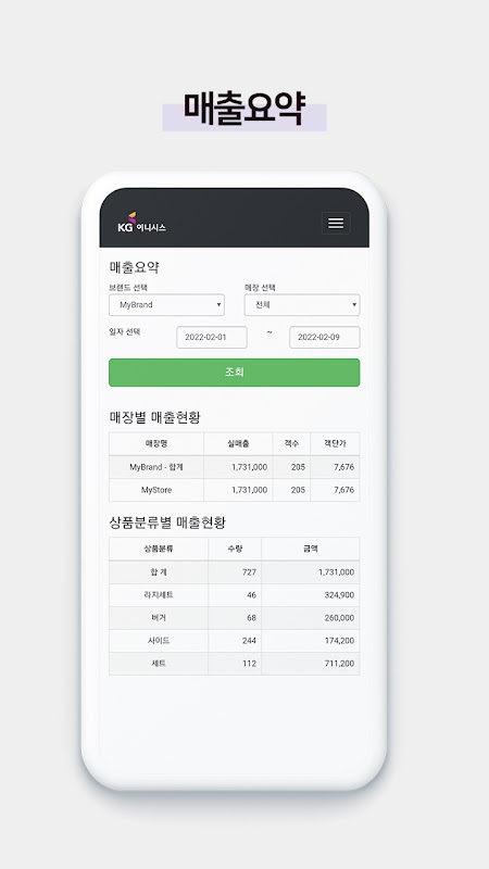 KGイニシス営業管理ソリューション加盟店で利用できる売上/営業管理アプリです。