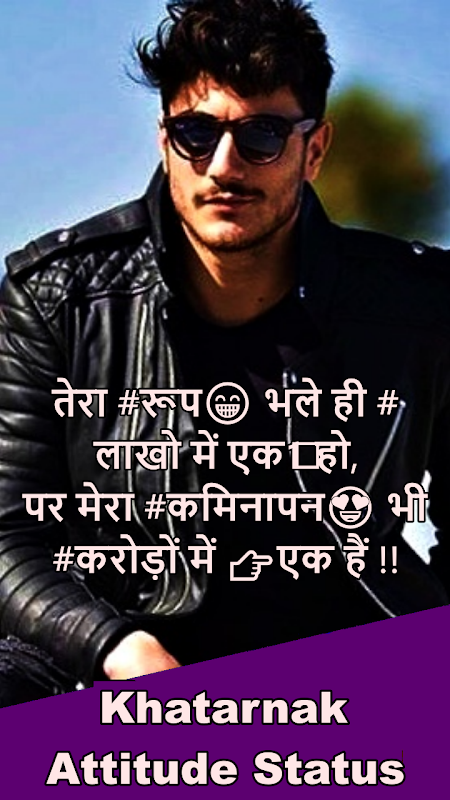 This app brings you the best khatarnak Attitude Status in Hindi for 2019, 2018. Show your attitude & personality with these खतरनाक Attitude स्टेटस Shayari in Hindi. These short dadagiri status for WhatsApp are Hindi msgs which can be sent as an SMS or can be set as a खतरनाक WhatsApp status or it can also be used as a new dadagiris Facebook And WhatsApp image status Shayari 2019.
