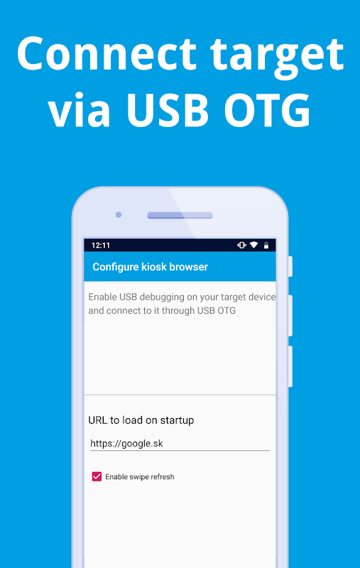 あなたは、USB OTGを介してあなたのターゲットの単目的のAndroidデバイスを接続し、事前定義されたURLをロードしてフルスクリーンにロックするブラウザを設定することができます。