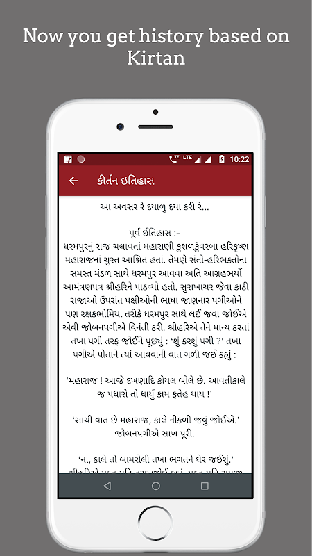バグワンスワミナラヤンの神聖な存在の間に、多くのナンドセインツは非常に愛情を込めて多くの歌詞を作曲しました:プラバティヤ、アーティ、アスタカス、ニティアニヤマスなどの賛美歌と精神的な歌、そしてバグワンのアイドルと彼のリラチャリトラスの賛美歌。信者を助ける目的で、シュリー・スワミナラヤン・グルクル・ラージコート・サンスタンは、3000人以上のキルタンのデータベースを収集して編集するために多大な努力を払ってきました。これらのキルタン語はグジャラート語と音訳英語(Lipi)であるため、グジャラート語を読めない信者もこのアプリケーションを利用できます。