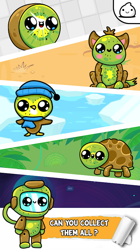 進化が始まったときにキウイフードの進化がどうなるかを調べ、2つのキウイを組み合わせて進化させ、お気に入りの食べ物の最も奇妙で面白い形を発見してください。