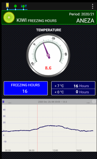 キウイ農園の冬の凍結時間