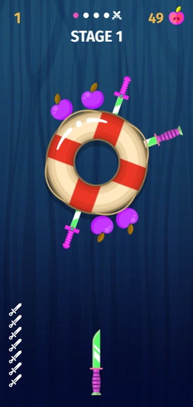 Throw the knives into the logs to break them. Slash the apples and unlock new knives. Each 5th stage is defended by a boss - beat them to get exclusive knives!