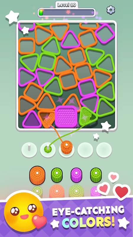 Knit & Patchは、重力物理法則を融合させたユニークな編み物パズルです。タップするだけで、同じ色のウールコイルを空いているドックに送り、カラフルな糸でフレームが継ぎ合わされていく様子を、華やかな編み物のビジュアルでお楽しみください。フレームを継ぎ合わせ続けることで、ボードからフレームを取り除いて、難易度の高いレベルをクリアしましょう。