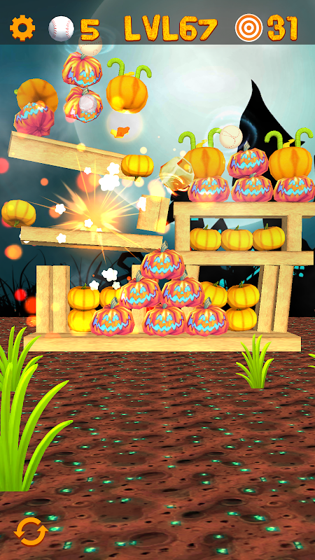 射撃場のように、野球ボールでカボチャや様々なターゲットを狙い撃ちしましょう。ターゲットの方向にスワイプしてボールを投げます。複数のターゲットに命中させると、爆発するカボチャの壮大な連鎖反応が生まれます!すべてのターゲットを地面に叩き落とせば勝利です。タッチインターフェースはモバイルデバイス向けに特別に設計されています。