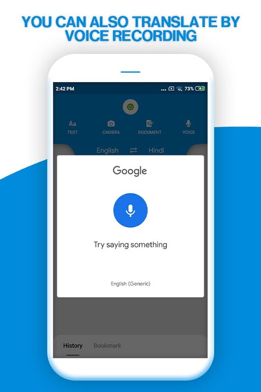 ★ You can easily get your past translation in recenet tab.Also you can Save any words or sentence which you want to save for future.