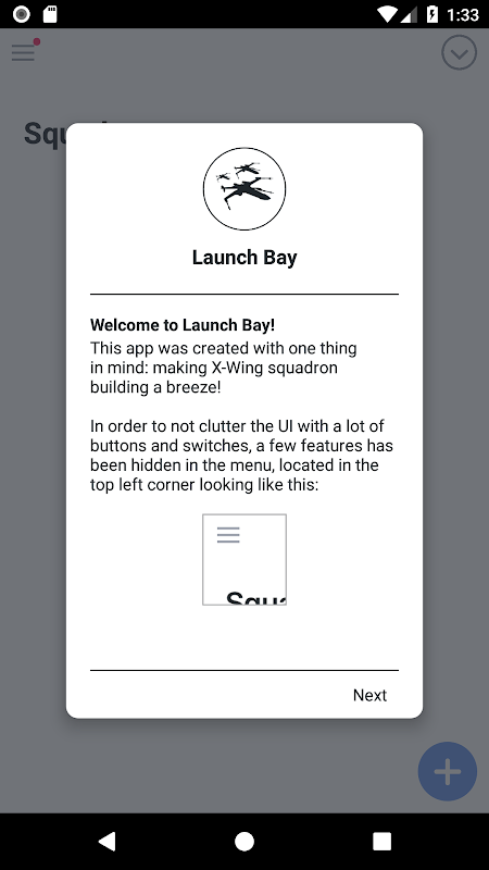 Launch Bay is a Squadron builder for X-Wing The Miniatures Game with a clean user interface, frequently updated (mostly over the air) and ability to save your squadrons in the cloud in case something happens to your phone!