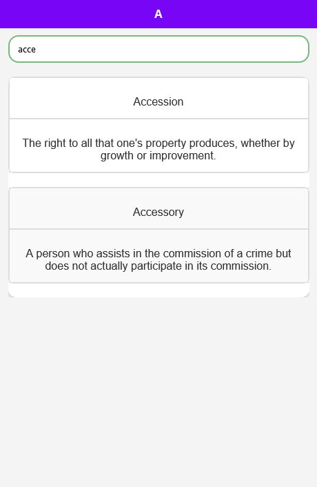 試験の準備をしている場合でも、法律文書を作成している場合でも、単に法律用語に興味がある場合でも、法律辞書アプリは頼りになる情報源です。包括的な a ~ z 分類と強力な検索機能により、複雑な法律の世界をナビゲートすることがかつてないほど簡単になりました。