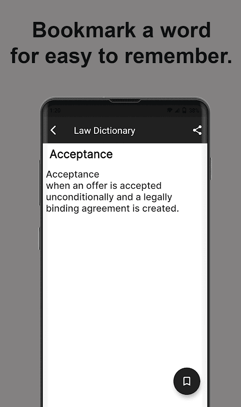 - Over 10000+ word dictionary of law terms.