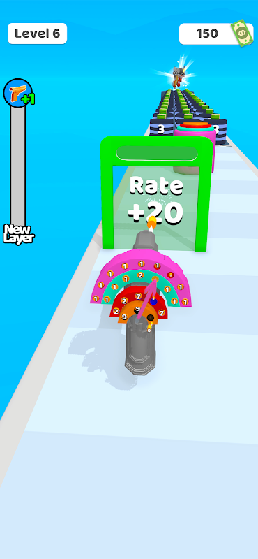 銃で撃ち始め、邪魔になるものをすべて壊してください。壊れたら、武器にレイヤーを追加して強くなります。弾丸を集めながらアップグレードすると、はるかに速く進行します!