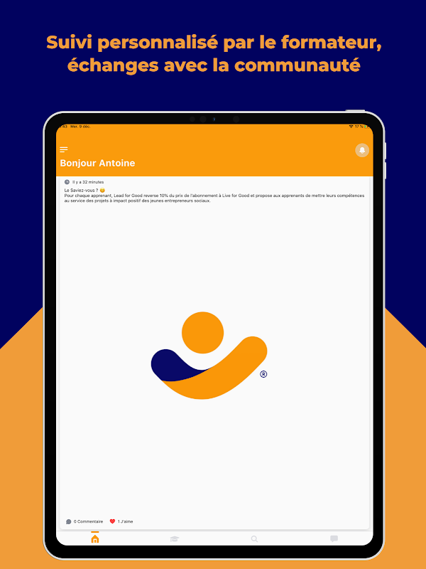 Après 7 ans de recherches scientifiques avec les plus grands chercheurs et déjà plusieurs milliers de personnes formées dans le monde, notre Institut est heureux de vous proposer la saison 1 de Lead for Good ®. Un parcours de formation personnelle unique, ludique et simple pour développer vos compétences humaines et relationnelles. L’application vous accompagne progressivement dans l'acquisition de nouvelles compétences utiles pour vous épanouir au travail, gagner en performance et révéler le meilleur de vous-même.