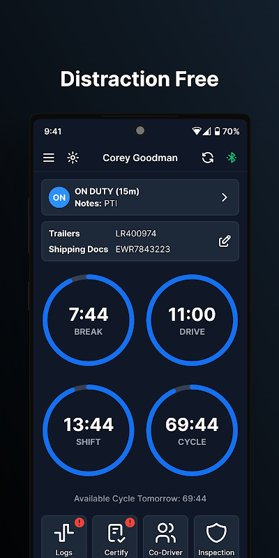 Leader ELD は、ドライバーが毎日使いやすい、シンプルでユーザーフレンドリーなインターフェイスを備えています。