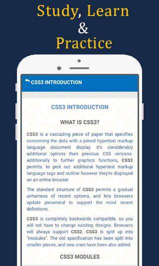 CSS 3プログラミングを学ぶのはとても簡単です。プログラミングのスキルは必要ありません。あなたはそれがそれであるHTMLの基本的な知識を持っているべきです。私たちの学ぶCSS 3チュートリアルオフラインアプリでは、HTMLとcss3.learn css 3、css 3チュートリアルオフライン、css 3オフライン、css 3とhtml 5を通じてWebページを開発できます。