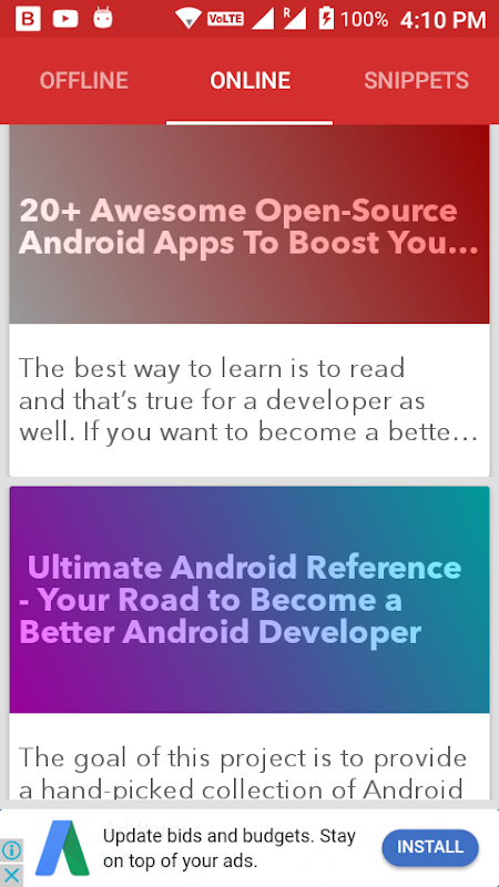 This feature differentiate this app from others as it gives the ease to just scroll and read the blog from the expert developer worldwide.