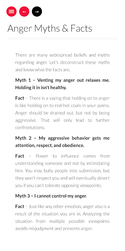 この無料アプリは、怒りのコントロールを正しく理解し、テクニックを使って怒りをコントロールする方法を教えてくれます。ここでは、ほぼすべてのリファレンスをカバーしています。シーケンシャル チュートリアルでは、基本レベルから上級レベルまで知ることができます。