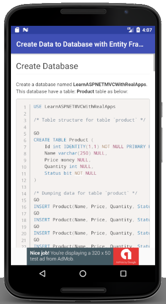 このアプリは、あなたの使用ASP.NET MVCフレームワークでの実際のアプリケーションを提供します