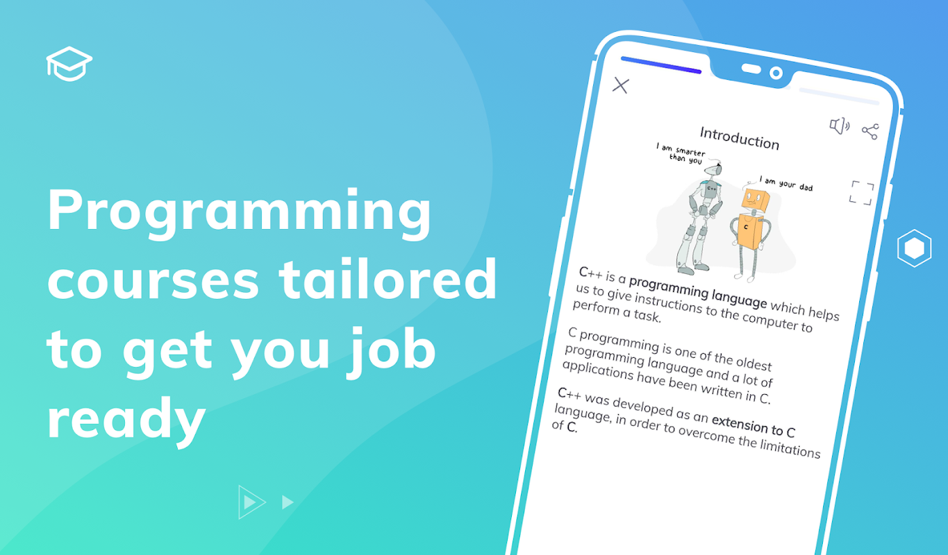 「LearnC ++」アプリを使用すると、コード学習を簡単で楽しいものにすることができます。これが、C ++プログラミング言語を学ぶための唯一の選択となる機能です-