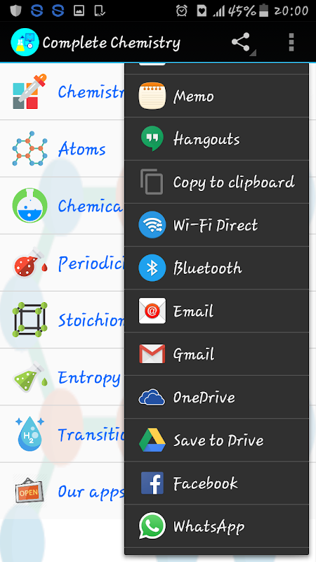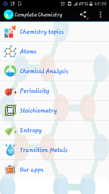 基礎から化学を学びます。このアプリであなたと化学ブックを運びます。化学を学ぶ学生のための完全な化学アプリ。アプリは、チュートリアル、ソルバー、クイズ、数式や辞書をカバーしています。それはあなたが化学の概念を理解するために知っておく必要があるすべてをカバーしています。実用的な化学は周期律表および希釈計算にあなたを公開しています。 ❆特長❆∞原子の事実∞プラスチック事実∞∞ヒ素事実∞物理化学の事実∞有機化学の事実∞原子番号の事実∞サイエンスファクト∞科学者の事実∞化学事実∞無機化学の事実∞生化学事実は事実∞混合物の事実が☺評価することを忘れないでください化合物このアプリで提案や問題が発生した場合、このアプリは★★★★★親切に私はすぐにそれに出席するように、私は私の連絡先✉メール✉を通じてお知らせください。