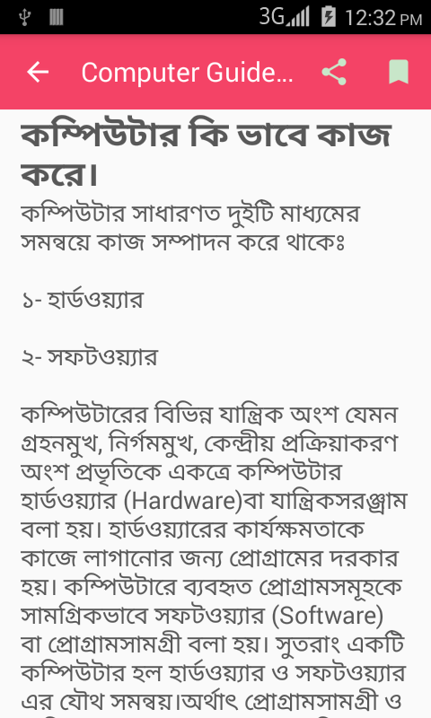 バングラアプリでコンピュータガイドは、その読者がWindowsアプリケーション、ハードウェアコンポーネント、およびバングラ言語におけるコンピュータに関するすべての基本的なデータの基礎を学ぶのを助けるためのものです。