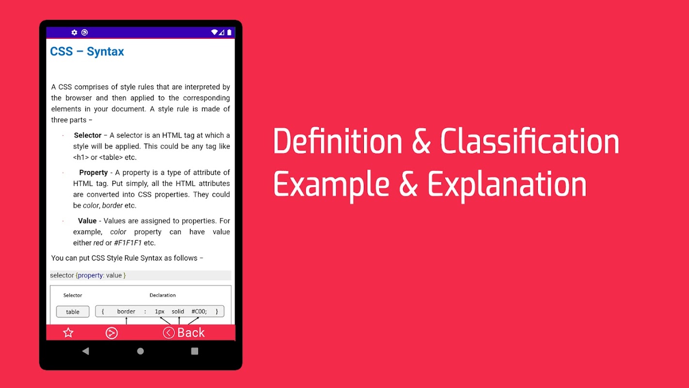 Learn CSS Tutorial Offline is an educational application. If you are looking for basic css course app so you are in a right place. This application will provide you most important & informative lessons. This basic css tutorial free app will provide you formula and example.