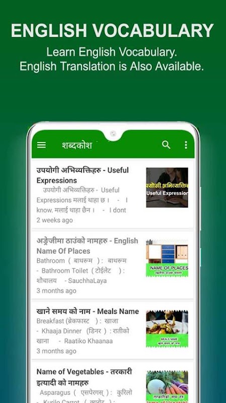 その上、それはネパール語と英語の両方ですべての重要な単語と意味を提供します。