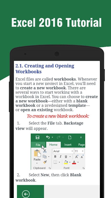 This app will guide you through the new features of MS Excel 2016 to help you easily learn Ms Excel and Practice any time.