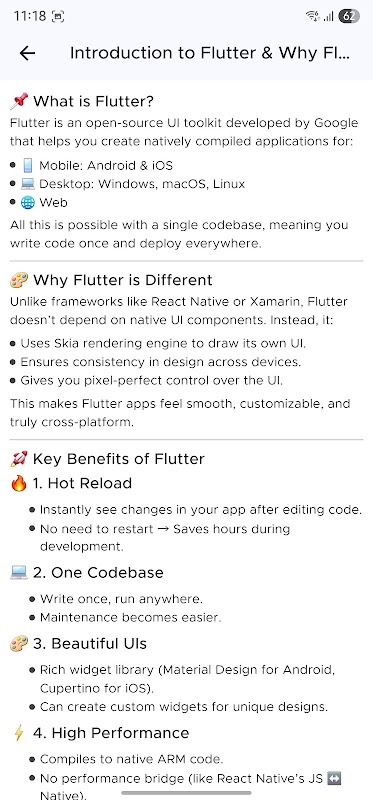 この Flutter チュートリアル アプリでは、Flutter 開発、Kotlin 開発、そして Dart について学ぶための、楽しくて分かりやすいレッスンが用意されています。Flutter をゼロから学びたい初心者の方でも、Flutter のスキルを磨きたい方でも、きっとあなたにぴったりのレッスンが見つかります。
