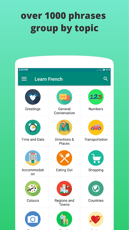 フランス語の慣用句を学ぶ - Apprendreルフランス語は18のカテゴリーの旅行者や初心者のための1000以上の一般的に使用されるフランス語のフレーズと語彙が含まれています。