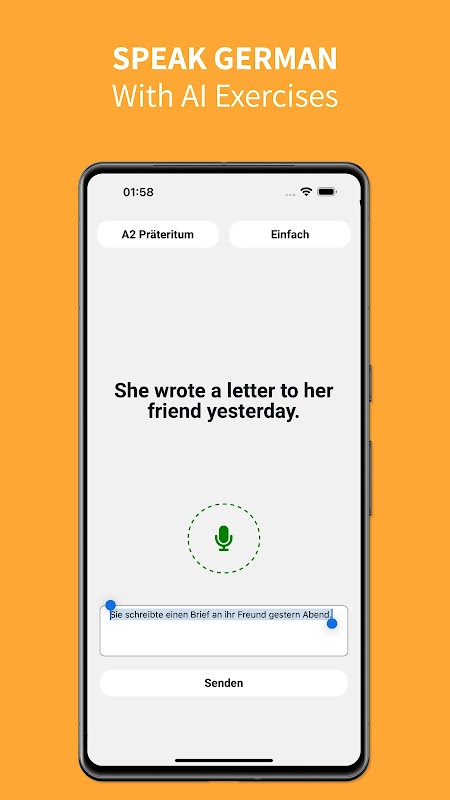 ドイツ語学習のためのAI練習アプリ。ドイツ語、文法、A1~C2レベルを学習