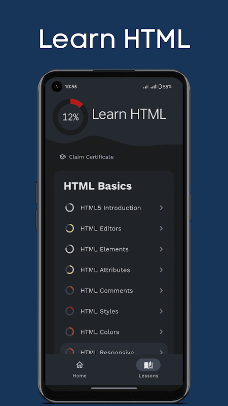 このアプリで HTML を無料で学んでください。