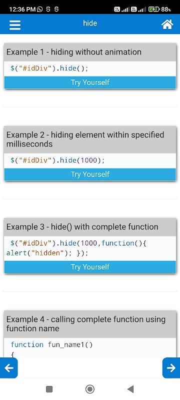 これは最高のjqueryチュートリアルアプリです。このアプリは非常にシンプルで簡単な方法でjqueryを技術します。このjqueryチュートリアルアプリの最大の特徴は、オフラインであることです。 jQueryの目的は、WebサイトでJavaScriptをはるかに簡単に使用できるようにすることです。
